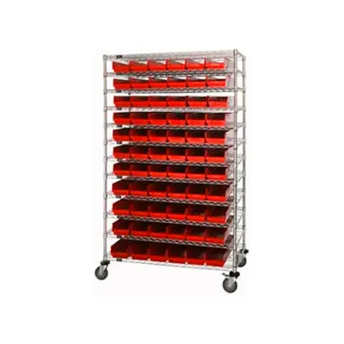 Global Industrial™ Chrome Wire Shelving avec 140 4"H Bacs en plastique, 72x14x74