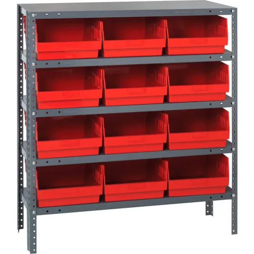 Quantum 1839-210 Étagère en acier avec (12) bacs à étagères de 6 po H rouge, 36 po L x 18 po P x 39 po H - 5 étagères