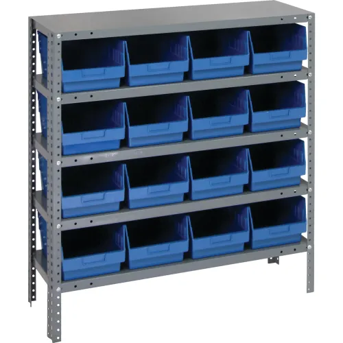 Quantum 1839-208 Étagère en acier avec (16) bacs à étagères de 6 po H bleu, 36 po L x 18 po P x 39 po H - 5 tablettes