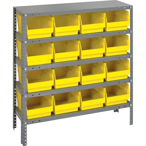 Quantum 1839-208 Étagères en acier avec (16) bacs à étagères de 6 po H jaune, 36 po L x 18 po P x 39 po H - 5 tablettes
