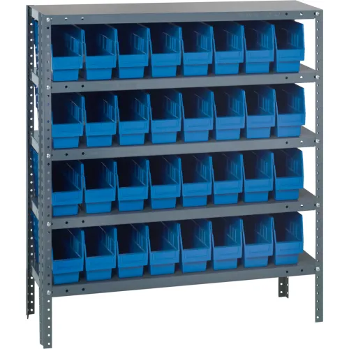 Quantum 1839-203 Étagère en acier avec (32) bacs à étagères de 6 po H bleu, 36 po L x 18 po P x 39 po H - 5 tablettes