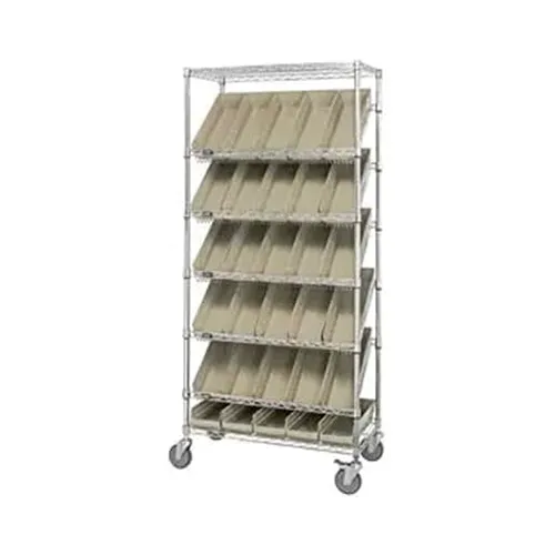 Global Industrial™ Easy Access Slant Shelf Chrome Wire Cart 18 4"H Shelf Bins Ivory 36Lx18Wx74H