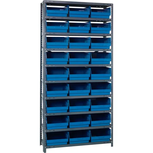 Quantum 1875-210 Étagère en acier avec (27) bacs à étagères de 6 po H bleu, 36 po L x 18 po P x 75 po H - 10 tablettes