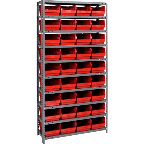 Quantum 1875-208 Étagère en acier avec (36) bacs à étagères de 6 po H rouge, 36 po L x 18 po P x 75 po H - 10 étagères