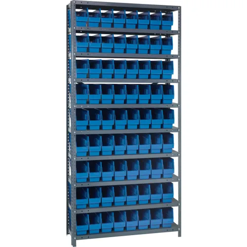 Quantum 1875-203 Étagère en acier avec (72) bacs à étagères de 6 po H bleu, 36 po L x 18 po P x 75 po H - 10 tablettes