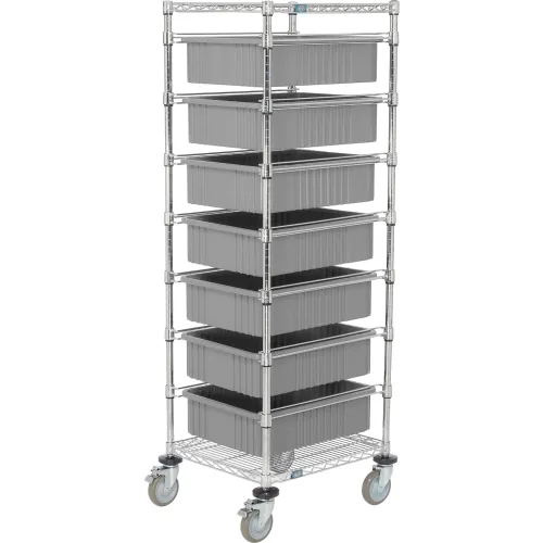 Global Industrial™ chariot de fil chromé avec (7) conteneurs à grille grise 6 « H, 21x24x69