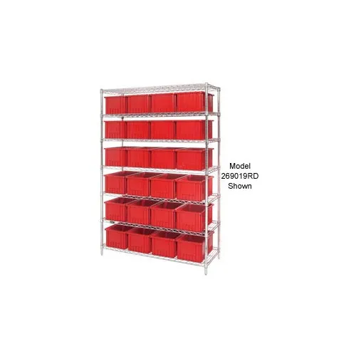 Global Industrial™ Chrome Wire Shelving With 24 6"H Grid Container Red, 60x24x74