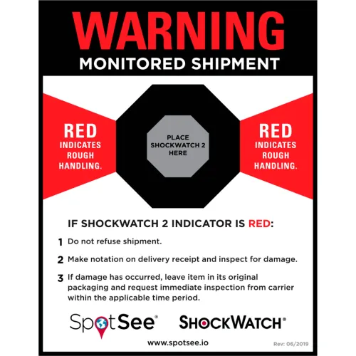 SpotSee™ ShockWatch® Companion Labels, 5-3/4"W x 4-1/2"L, Noir/Rouge/Blanc, 200/Roll