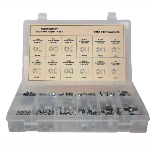 Assortiment de écrous de serrure en nylon finis 335 pièces - #4 à 5/8 » - Grade 2 - Acier - Zinc