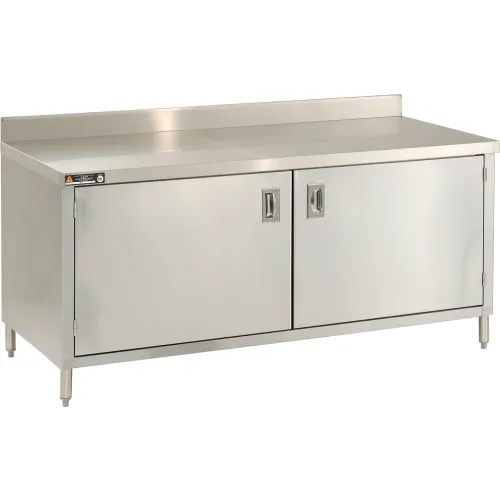 Table d'armoire en acier inoxydable 304 Aero Manufacturing, 60 x 24 po, dosseret de 4 po, portes à charnières