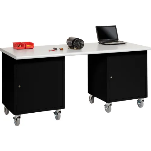 Global Industrial™ Mobile Pedestal Workbench, 72 x 30 », Lastifié Safety Edge, Noir