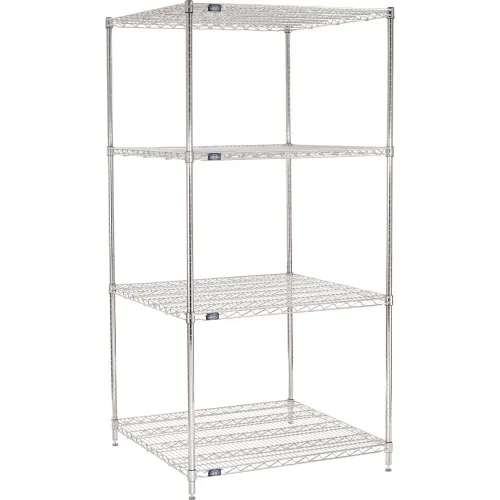 Étagère Nexel® 4, étagère métallique chromée, modèle de base, 36" de largeur x 36" de profondeur x 74" de hauteur