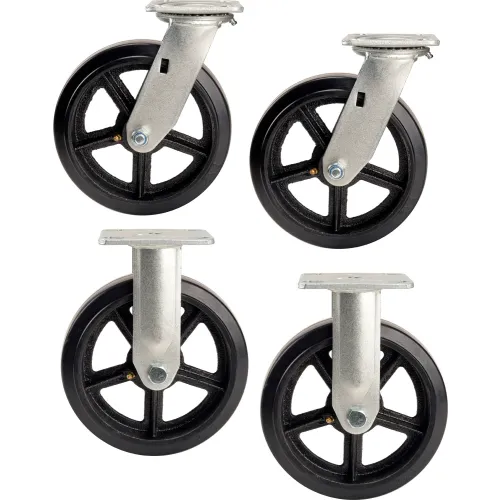 Kit de roulettes en caoutchouc moulé Global Industrial™ 8" x 2" 2 roulettes pivotantes, 2 roulettes fixes