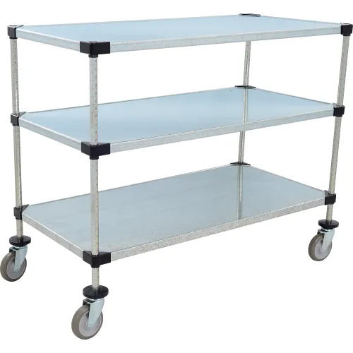 Nexel®, 3 étagères, chariot à étagères, galvanisé, 48 po L x 24 po P x 40 po H, roulettes en polyéthylène, 4 pivotantes