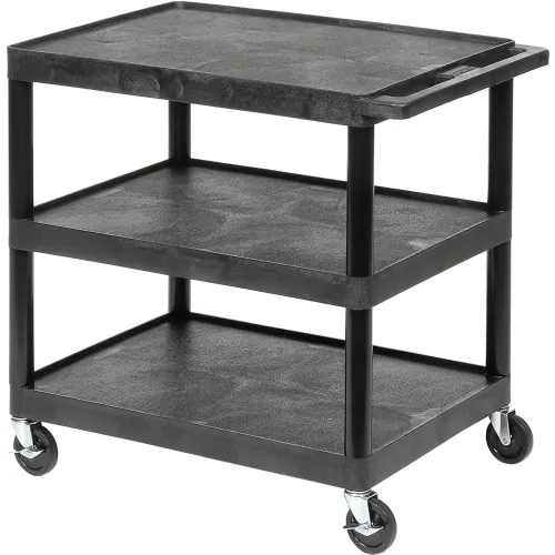 Chariot utilitaire en plastique louxor avec 3 étagères, 250 lb. Capacité, 24"L x 18"L x 34"H, Noir