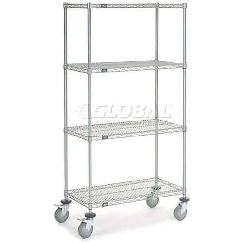 Chariot à 4 étagères Nexel®, chrome, 36 po L x 18 po P x 69 po H, roulettes à tige en polyuréthane, 4 pivotantes, 2 freins
