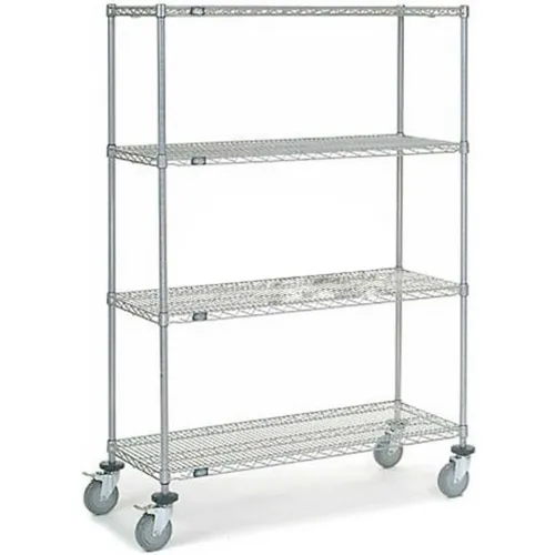 Chariot à 4 étagères Nexel®, chrome, 48 po L x 18 po P x 69 po H, roulettes à tige en polyuréthane, 4 pivotantes, 2 freins