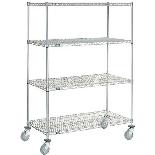 Chariot à 4 tablettes Nexel®, chrome, 48 po L x 24 po P x 69 po H, roulettes à tige en polyuréthane, 4 pivotantes