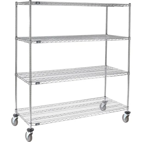 Chariot à 4 tablettes Nexel®, chrome, 60 po L x 24 po P x 69 po H, roulettes à tige en polyuréthane, 4 pivotantes