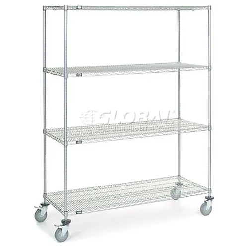 Chariot à 4 tablettes Nexel®, chrome, 60 po L x 24 po P x 80 po H, roulettes à tige en polyuréthane, 4 pivotantes