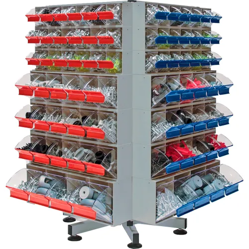 Quantum Tip Out Bin Spinner, 37"W x 48"H, 148 clear cups, gris