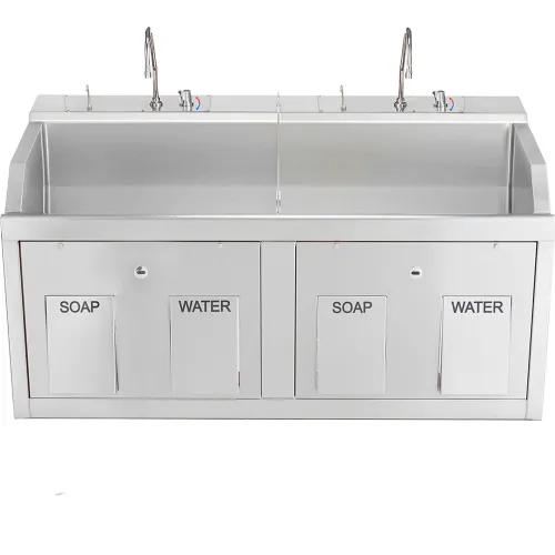 Blickman Double Station Wall Mounted Lodi Scrub Sink, Contrôle de l’action du genou, Acier inoxydable