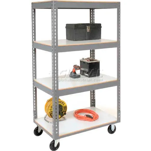 Chariot Global Industrial sans boulons Global Industrial avec 4 étagères et roulettes en polyéthylène, 91 cm L x 61 cm l x 165 cm H, gris