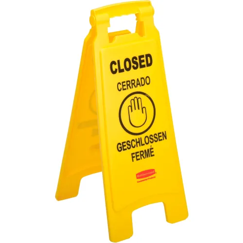 Pancarte de plancher Rubbermaid® 6112-78 à 2 côtés, multilingue – Fermé