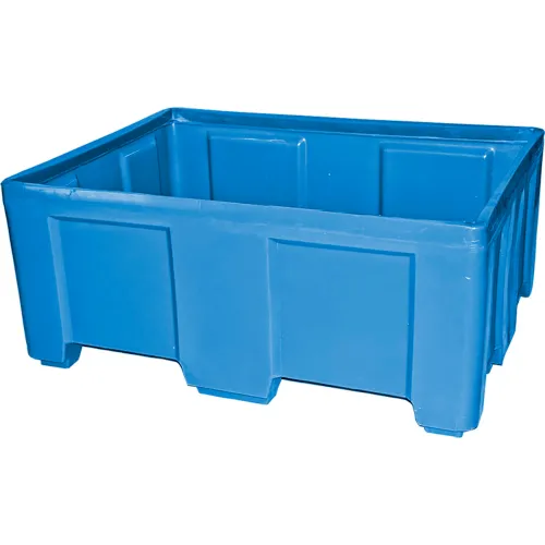 Conteneur d'expédition en plastique pour chariot élévateur, sans couvercle, 49-1/2 po L x 37-1/2 po l x 21-1/2 po H, capacité de 1 200 lb, bleu