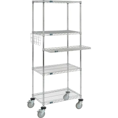 Poste informatique mobile à 4 tablettes en fil de métal Nexel™ avec plateau en porte-à-faux 30 po l x 18 po P x 79 po H, chromé