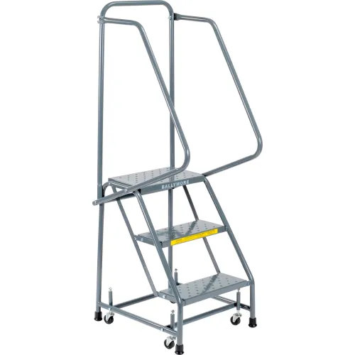 Échelle roulante en acier perforée 16 « W 3 Step 10 » D Top Step w / mains courantes - H318P
