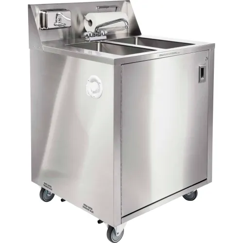 Évier utilitaire autoportant portatif en acier inoxydable à 2 bassins, avec eau chaude / froide