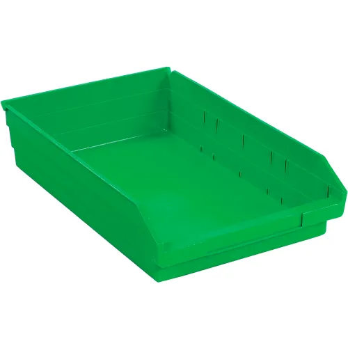 Bac de rangement empilable en plastique Global Industrial 11-1/8 po L x 17-7/8 po L x 4 po H Vert - Quantité par paquet : 12