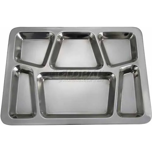 WINCO SMT-2 - 6 compartiment Mess plateau, 15-1/2" L, 11-1/2" W, inox, rectangulaire, Style B, qté par paquet : 24