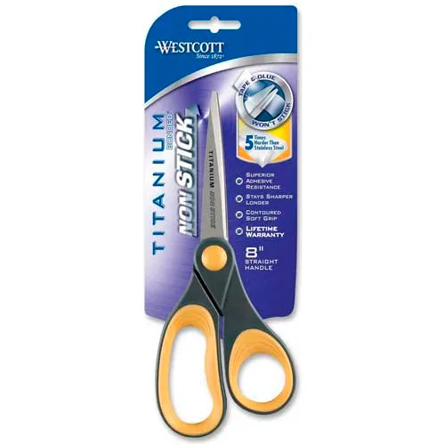 Westcott® titane collé anti-adhésif ciseaux, 8" L Straight, gris/jaune, qté par paquet : 6