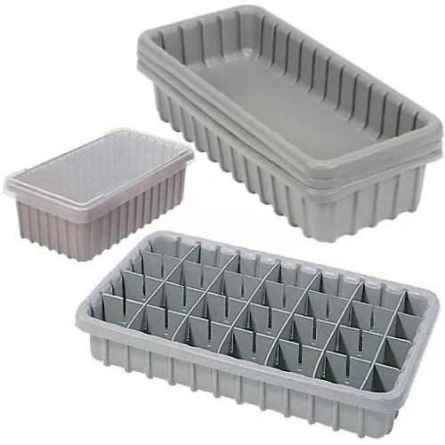 Boîte en plastique divisible Dandux®, 17-3/4 po L x 10-7/8 po L x 7 po H, gris, qté par paquet : 5